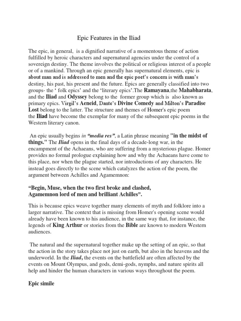 Epic Features In The Iliad Pdf Iliad Epic Poetry